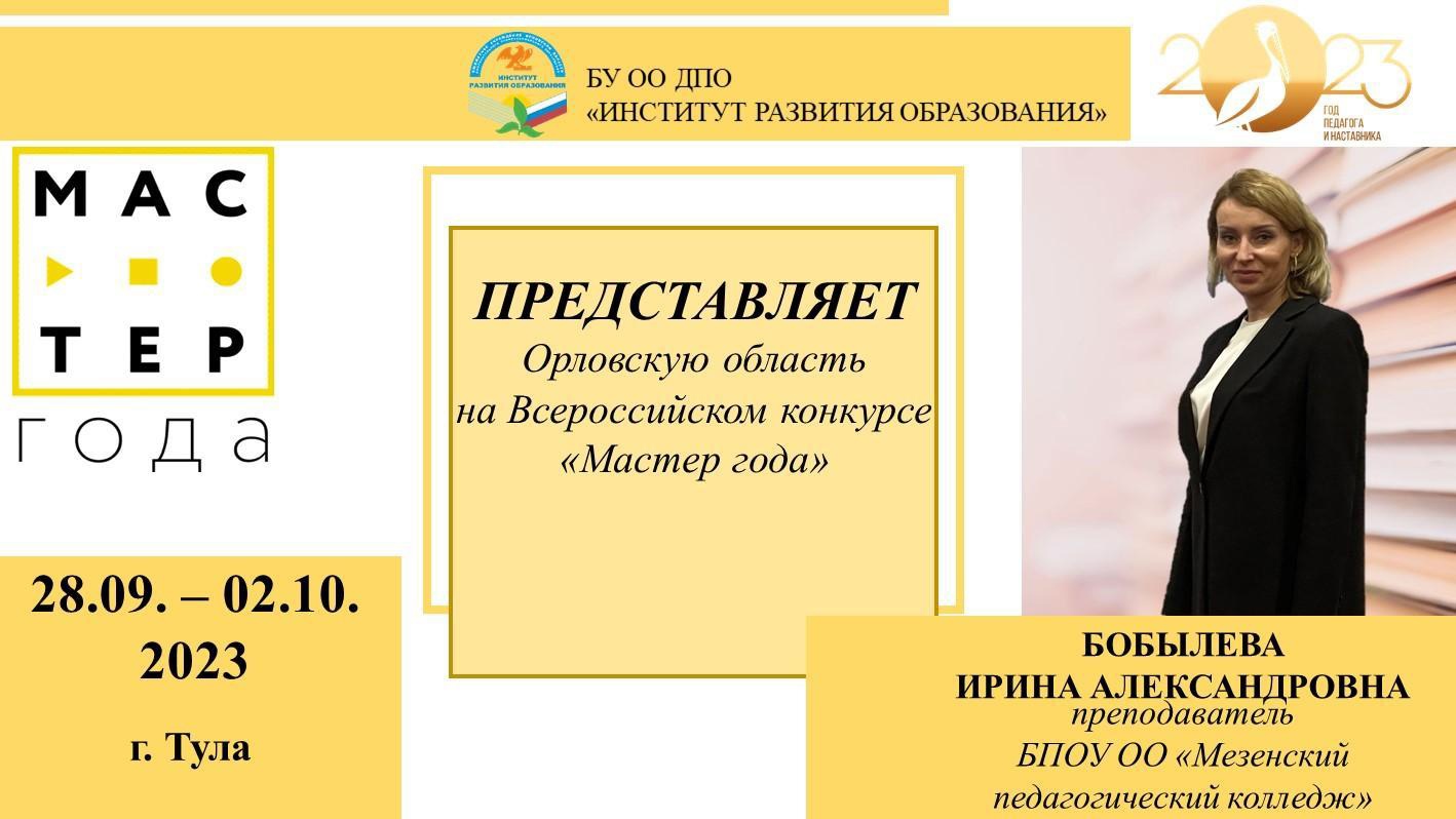 Каждый участник  конкурса «Мастер Года-2023 года» – супергерой.  А всем известно, что супергерой имеет свои особенности и таланты. Каждый проявил свой талант, каждый раскрылся в профессиональном плане. На конкурсе «Мастер Года» соединились лучшие преподаватели и мастера своего дела.  Мы безумно счастливы, что нашей участнице – Бобылевой Ирине Александровне, преподавателю Мезенского педагогического колледжа, удалось познакомить конкурсантов со своими методиками обучения, обменяться опытом с коллегами.