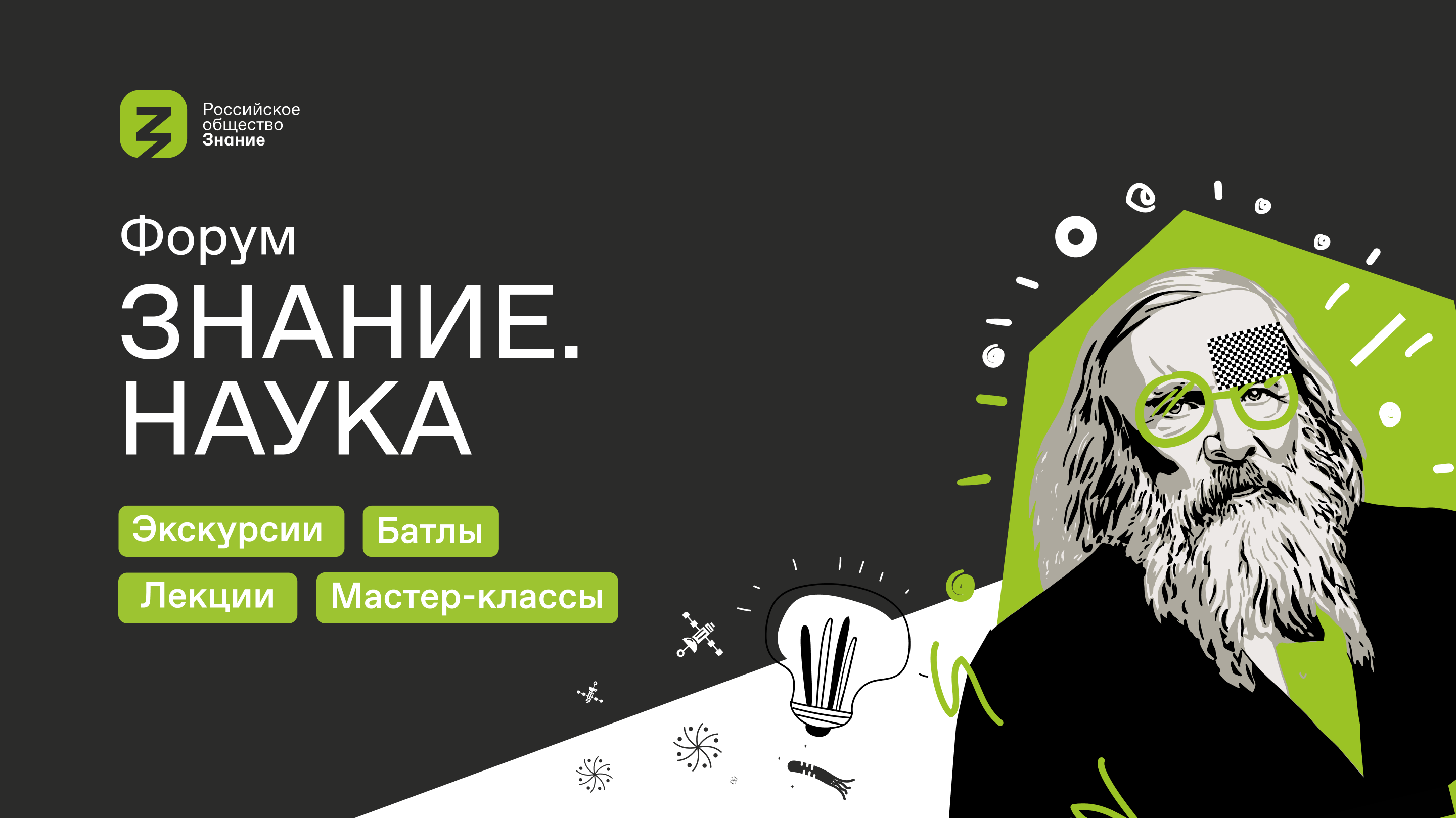 Молодежные просветительские форумы о науке были запущены Обществом «Знание» в апреле 2022-го в рамках проекта «Ученый говорит». Среди спикеров, которые в них участвовали, академик РАН, научный руководитель национального центра физики и математики Александр Сергеев; основатель компании Genotek Валерий Ильинский; профессор кафедры физиологии человека и животных биологического факультета МГУ Вячеслав Дубынин; депутат Государственной Думы, публицист Анатолий Вассерман; кристаллограф-теоретик, минеролог, химик, педагог, профессор РАН Артём Оганов. В 2023 году форумы продолжатся в рамках масштабного трека Знание.Наука.