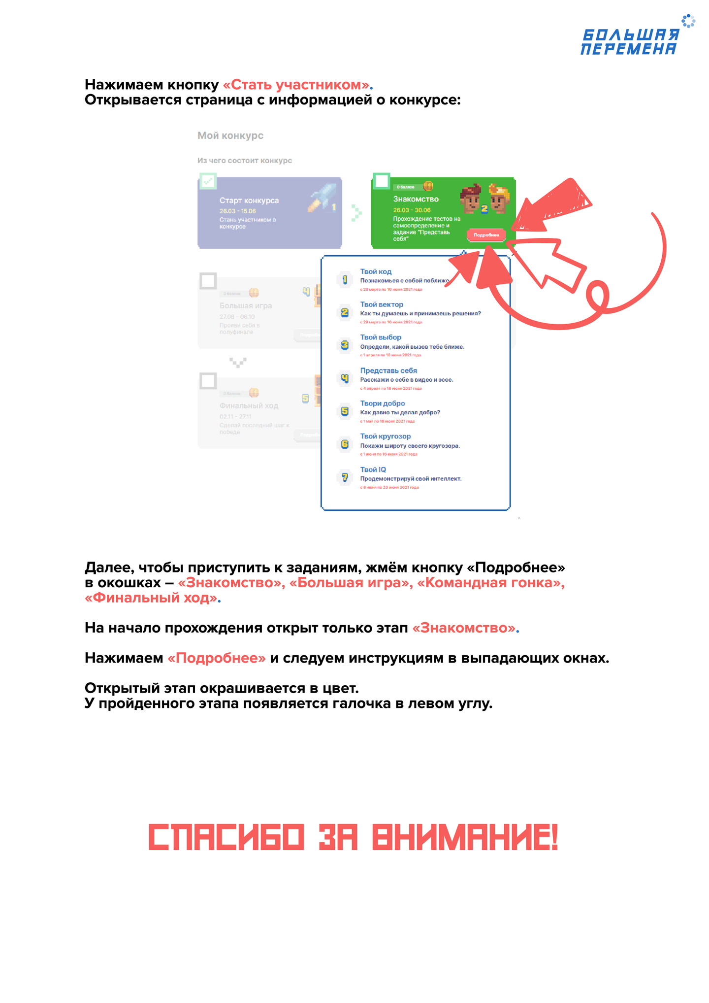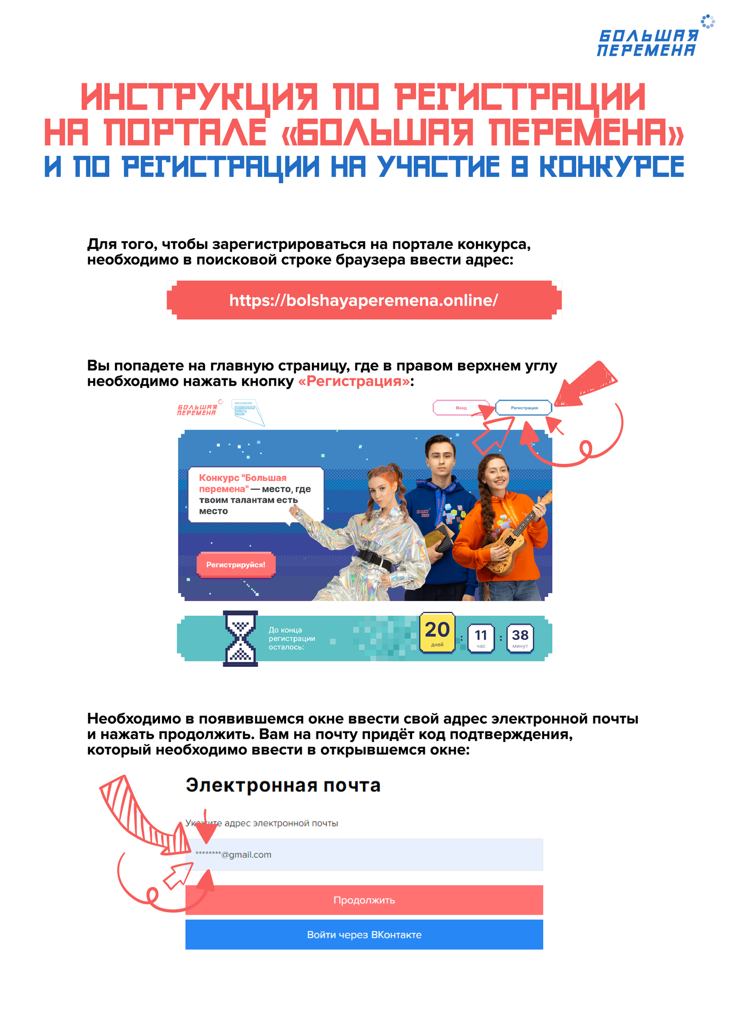 Инструкция по регистрации в конкурсе «Большая перемена»
